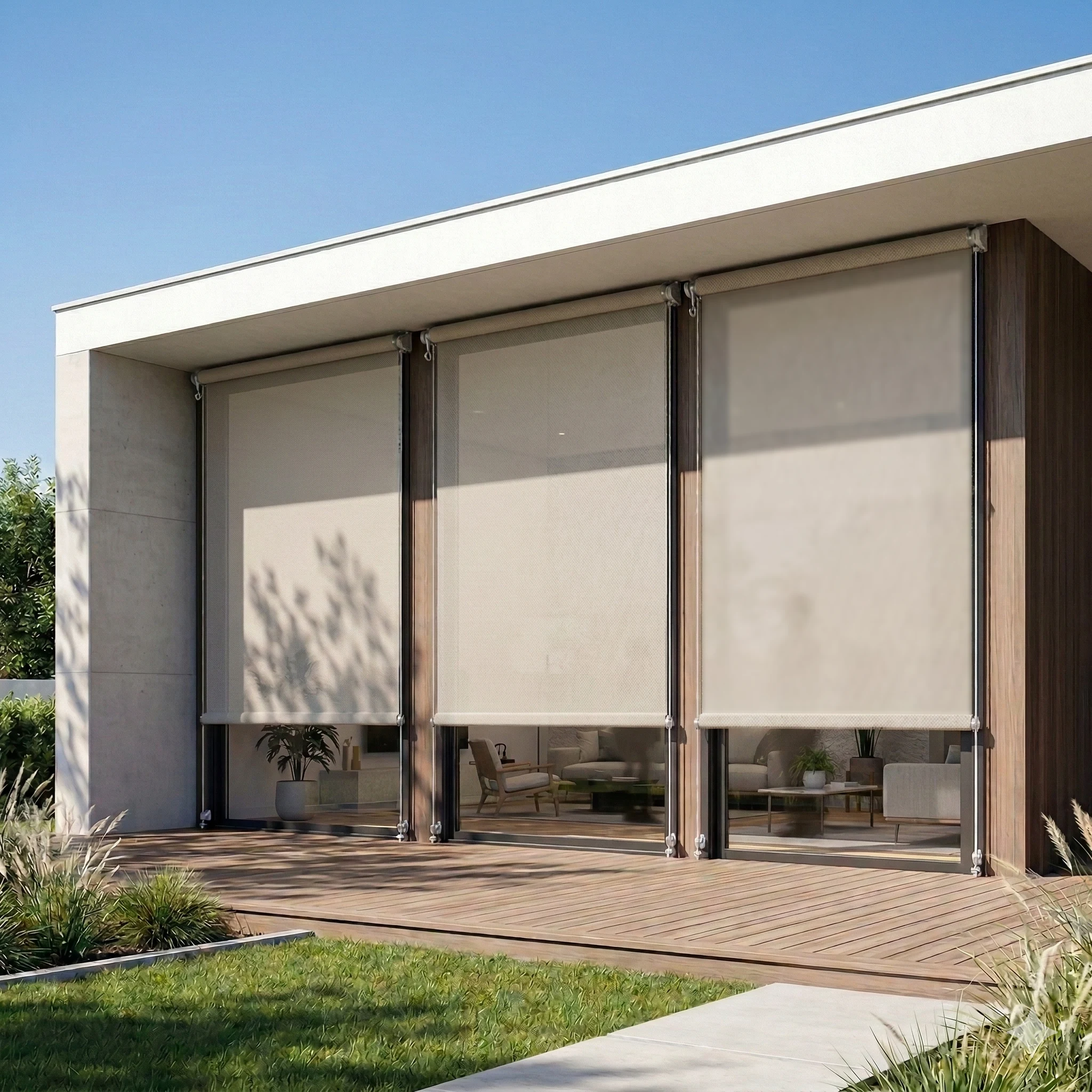 Esto permite proteger ventanales completos, terrazas o fachadas expuestas al sol.